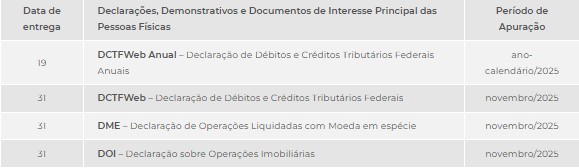 Agenda tributária de Dezembro de 2025 para pessoas físicas