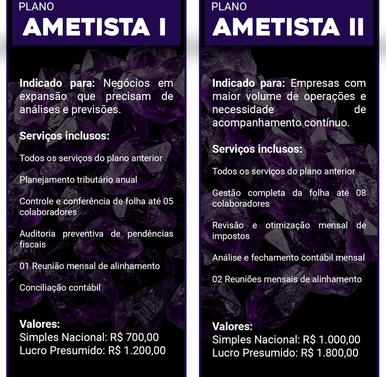 Planos Ametista, para empresas que evoluem rápido e atuam com visão de futuro.