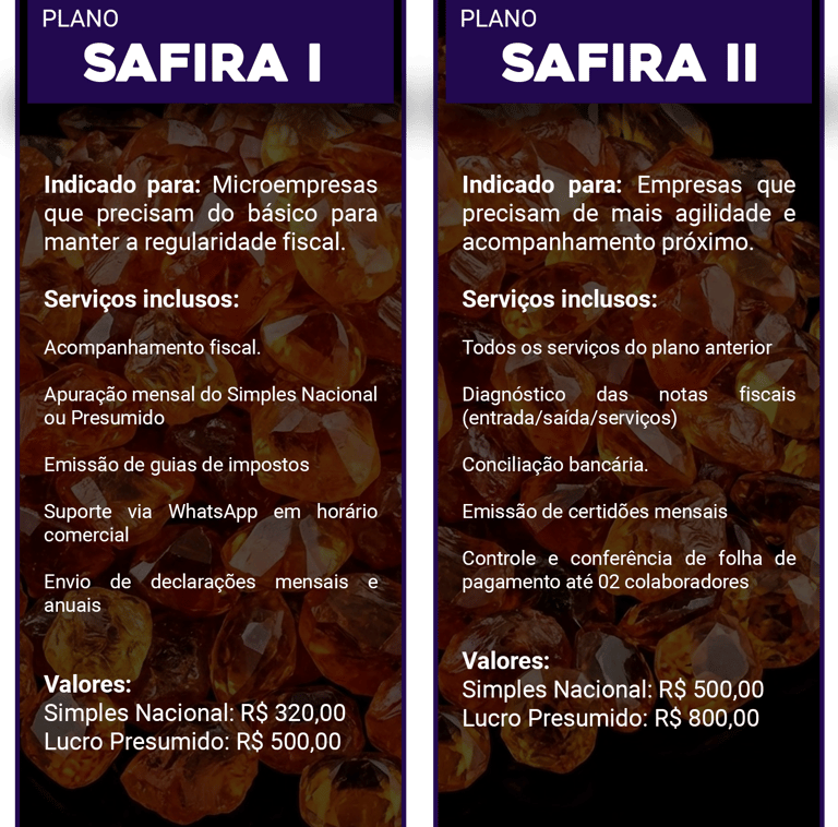 Planos Safira, para empresas que buscam o básico, mantendo a regularidade com eficiência.